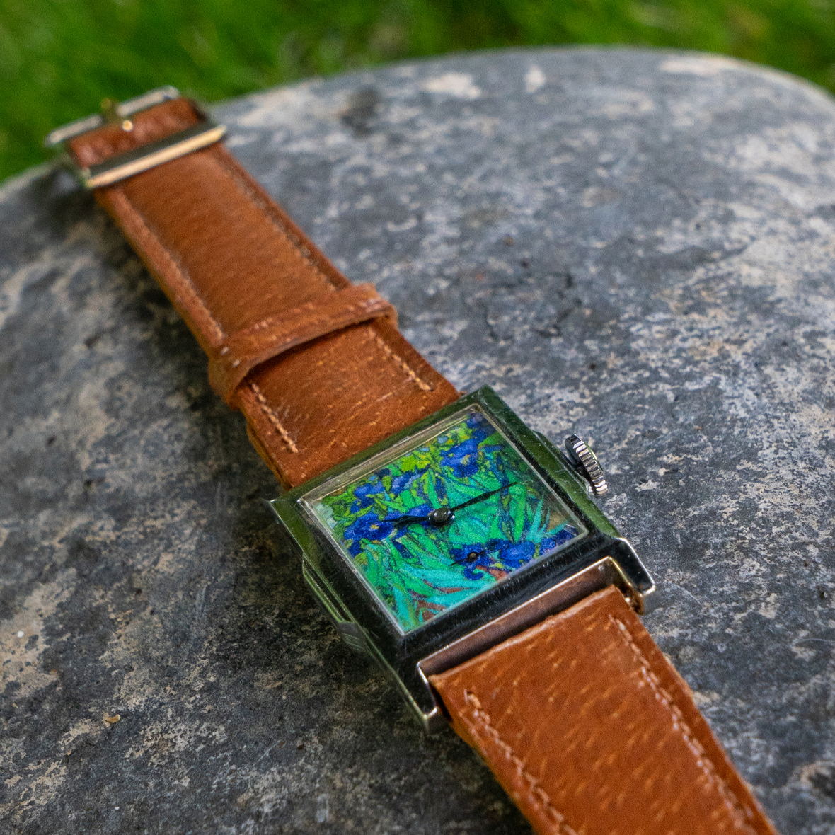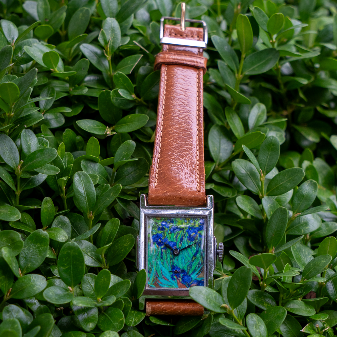Le cadran représentant un détail des “ Iris de Van Gogh“ lui va parfaitement bien et accroche la lumière comme le tableau, le vrai.