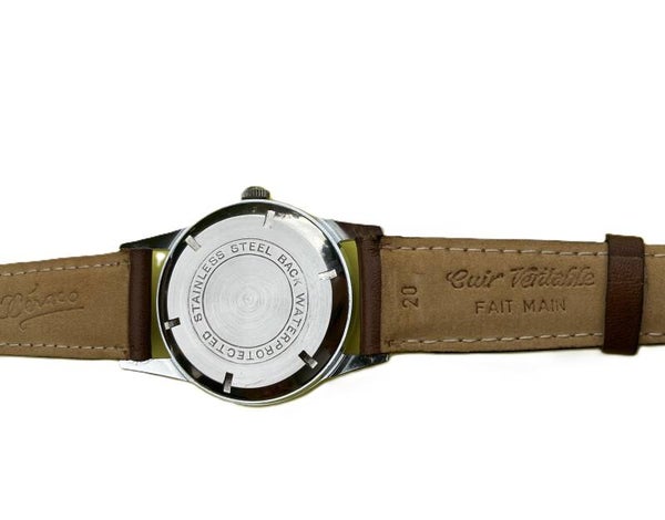 Orator, qui a dors et déjà dans les années 50 une bonne renommée impose son savoir faire également pour le marché civil avec de véritables montres d’horlogers, précises avec les très fiables calibres Eta. Notamment cet ETA 1080 qui n’équipait que les modèles de luxe de marques milieu haut de gamme et haut de gamme.